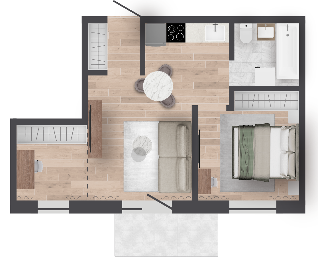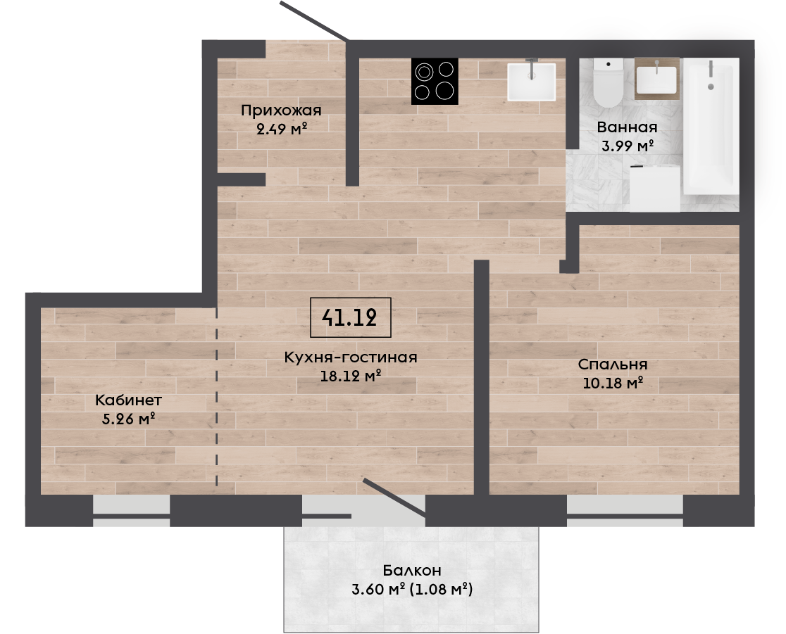| 41,12 м² Площадь квартиры | 2,7 м Высота потолков | 500 мм Высота подоконной части |