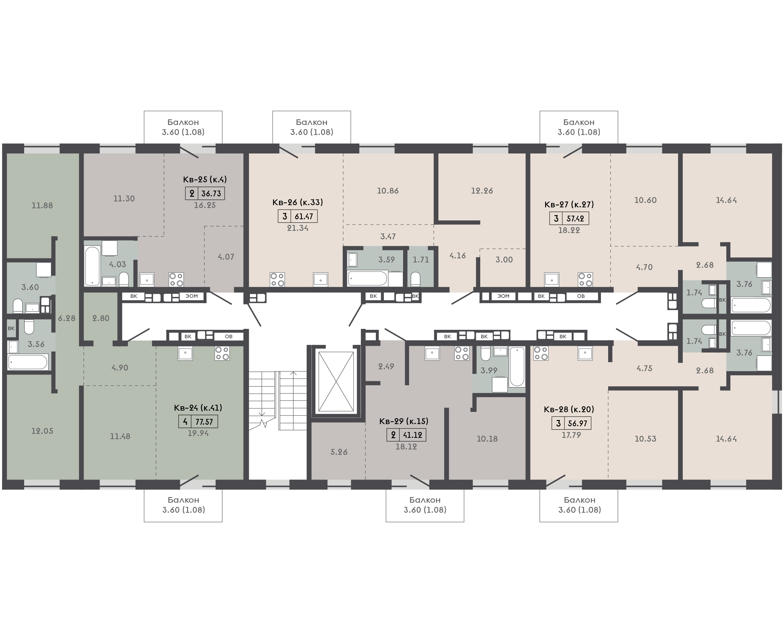 3-комнатная3-комнатная 61.47 м2 5 этаж