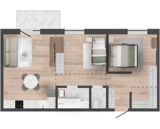 | 61,47 м² Площадь квартиры | 2,7 м Высота потолков | 500 мм Высота подоконной части |