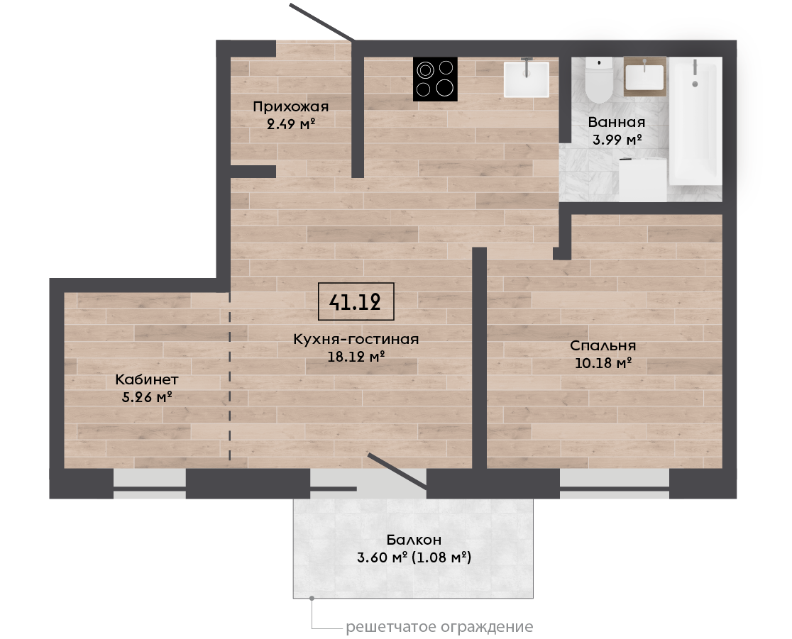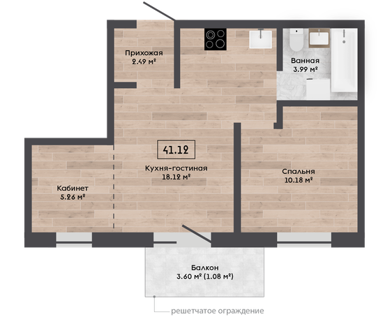 | 41,12 м² Площадь квартиры | 2,7 м Высота потолков | 500 мм Высота подоконной части |