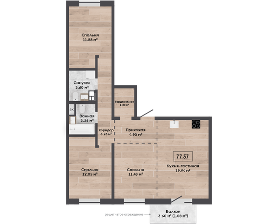 Обязательная покупка при приобретении квартиры| Площадь, м.кв. | 77.57 |