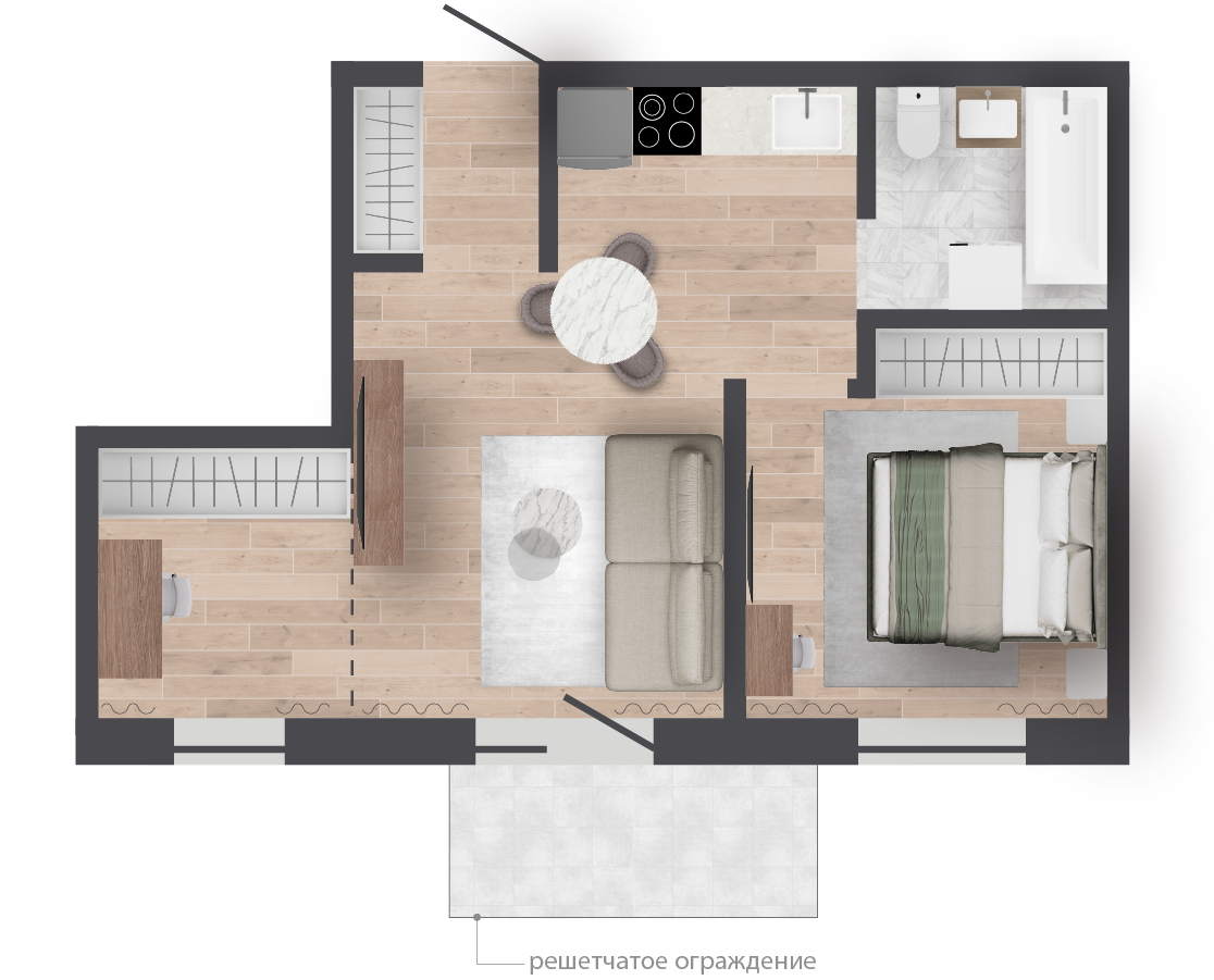 | 41,12 м² Площадь квартиры | 2,7 м Высота потолков | 500 мм Высота подоконной части |