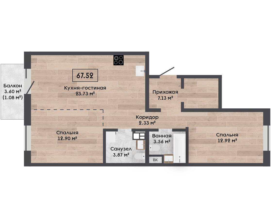 Обязательная покупка при приобретении квартиры| Площадь, м.кв. | 67.52 |