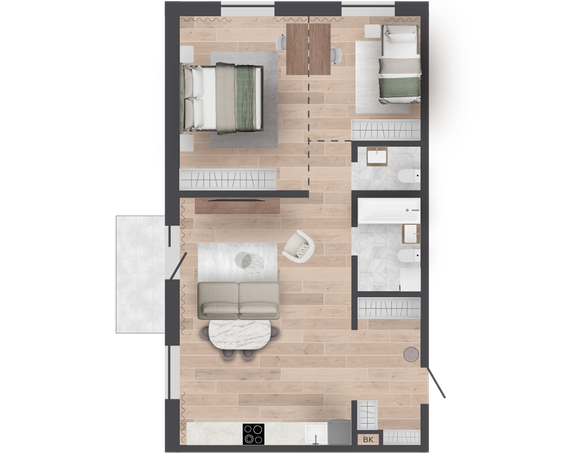 | 76,22 м² Площадь квартиры | 2,7 м Высота потолков | 500 мм Высота подоконной части |