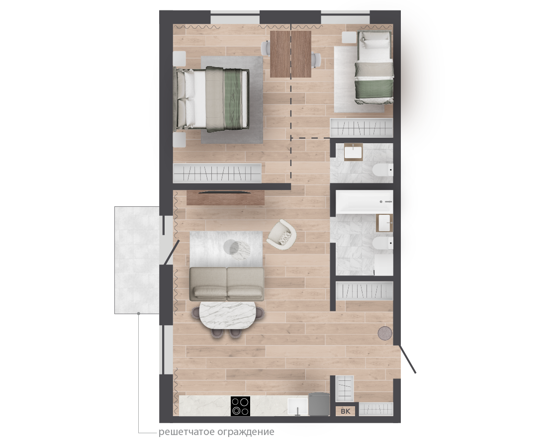 Квартиры на 1 этаже с личными участками-террасами с видом во двор