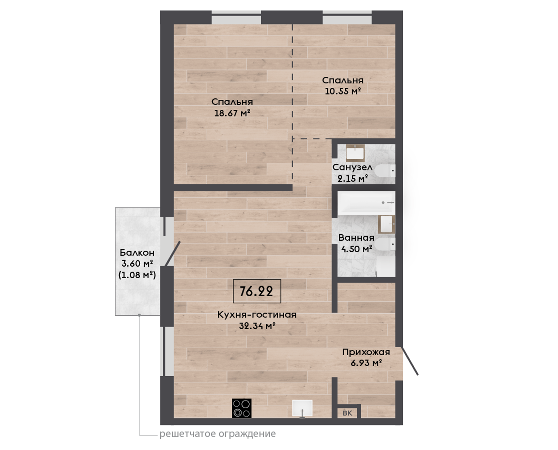 Обязательная покупка при приобретении квартиры| Площадь, м.кв. | 76.22 |