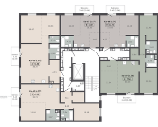 | 67,52 м² Площадь квартиры | 2,7 м Высота потолков | 500 мм Высота подоконной части |