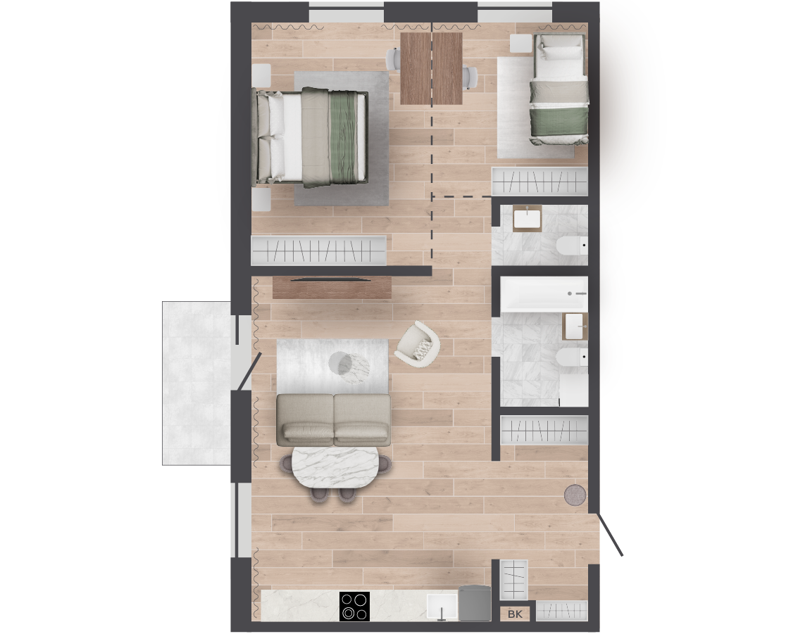 Квартиры на 1 этаже с личными участками-террасами с видом во двор
