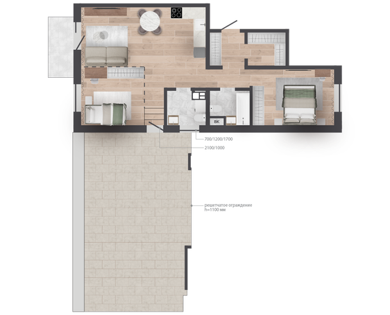 Квартиры на 1 этаже с личными участками-террасами с видом во двор