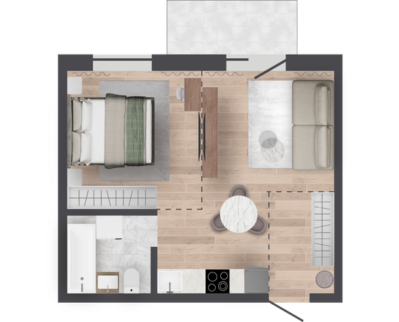| 36,84 м² Площадь квартиры | 2,7 м Высота потолков | 500 мм Высота подоконной части |