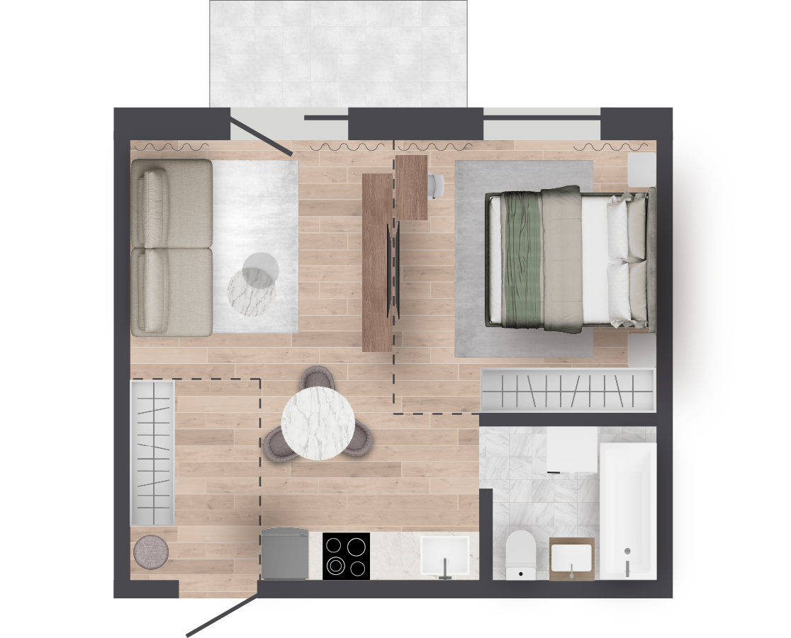 | 36,73 м² Площадь квартиры | 2,7 м Высота потолков | 500 мм Высота подоконной части |