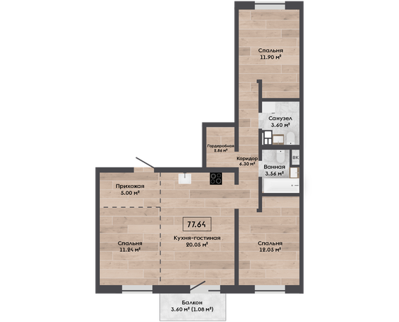 Обязательная покупка при приобретении квартиры| Площадь, м.кв. | 77.64 |