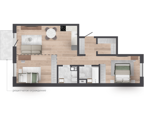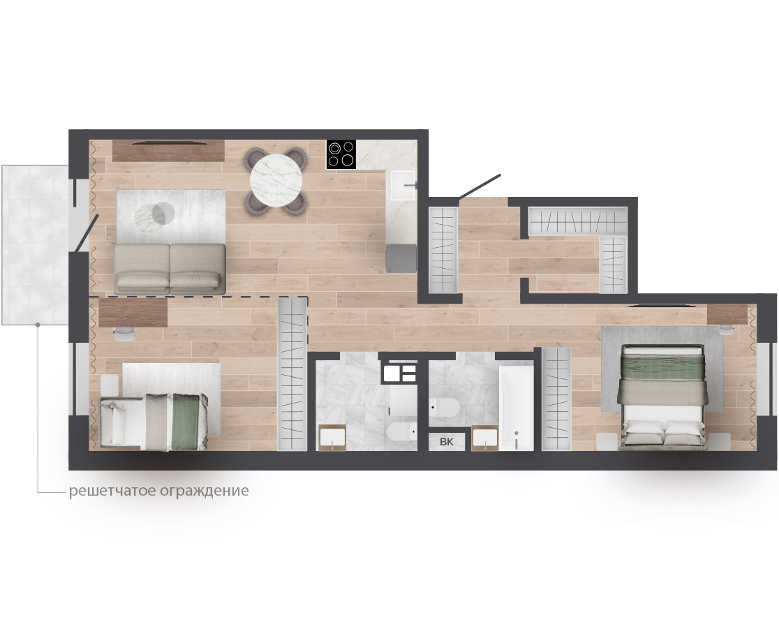 | 67,56 м² Площадь квартиры | 2,7 м Высота потолков | 500 мм Высота подоконной части |