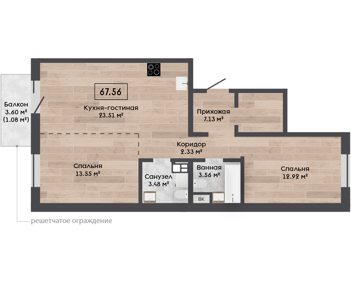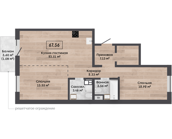 Обязательная покупка при приобретении квартиры| Площадь, м.кв. | 67.56 |