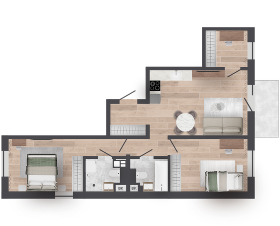 | 66,90 м² Площадь квартиры | 2,62 м Высота потолков | 500 мм Высота подоконной части |