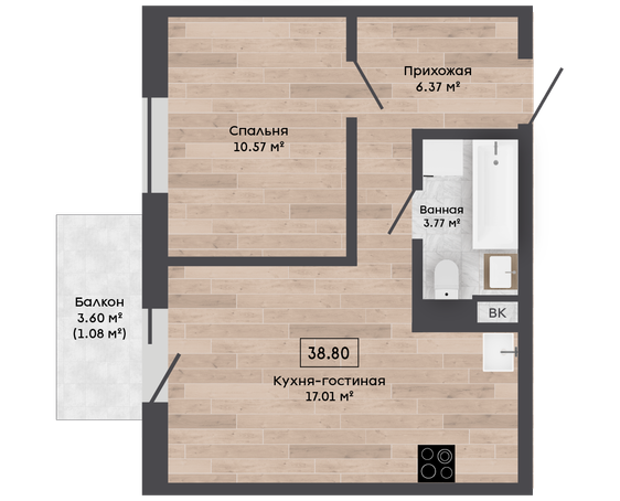 | Площадь, м.кв. | 38.8 |