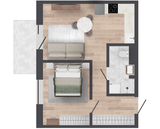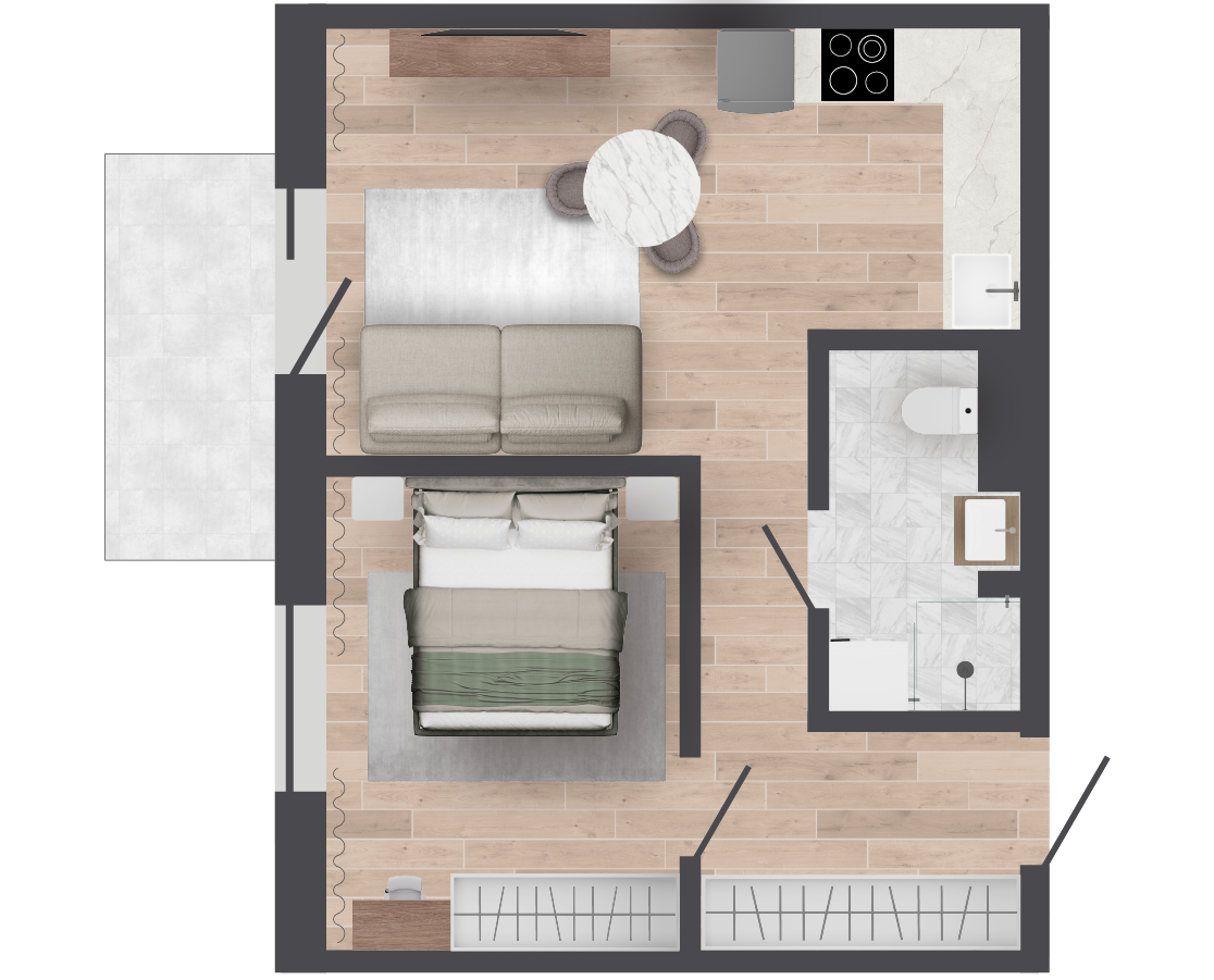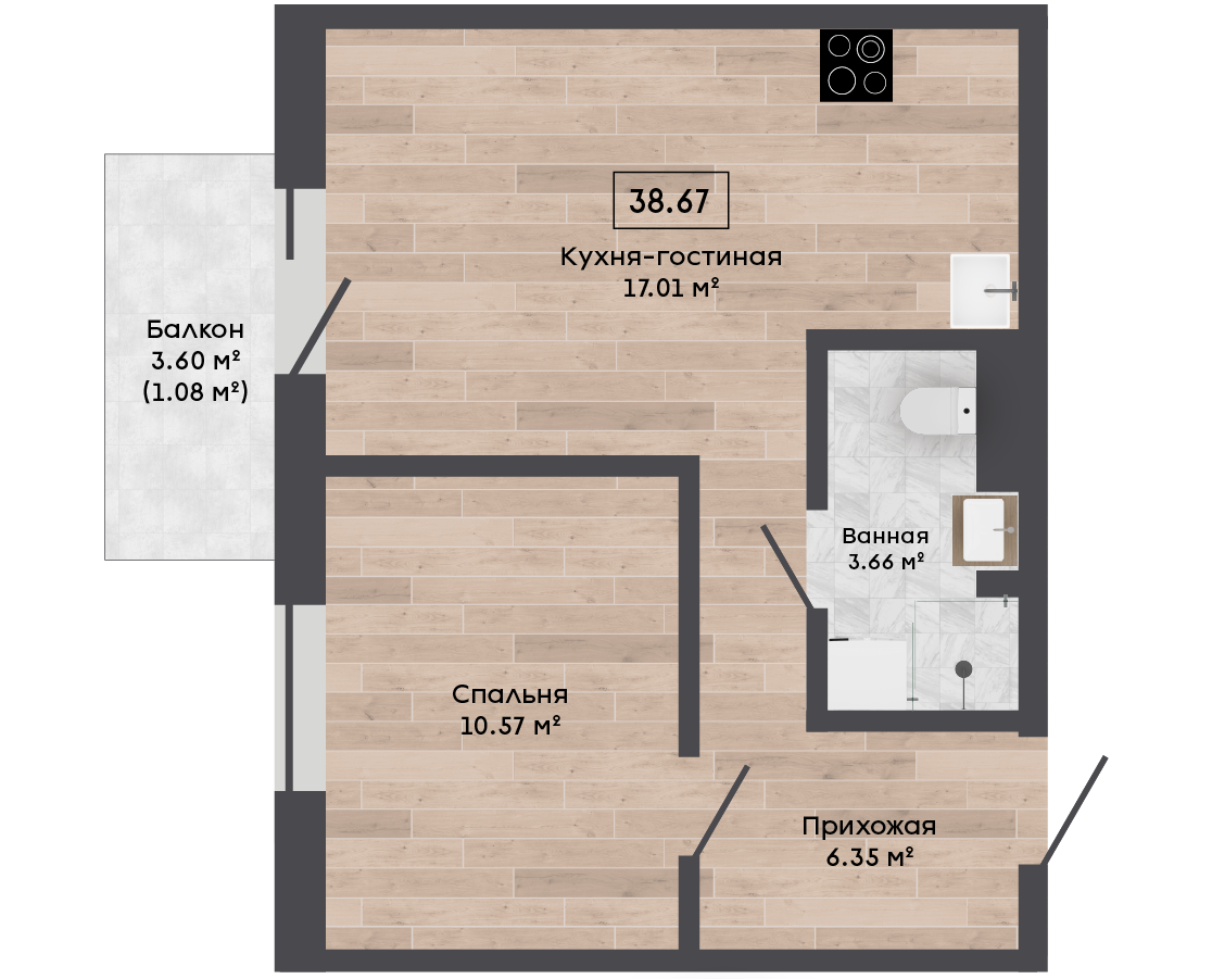 | 38,67 м² Площадь квартиры | 2,7 м Высота потолков | 500 мм Высота подоконной части |