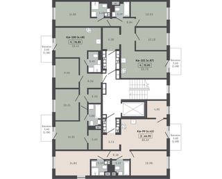 | 75,90 м² Площадь квартиры | 2,7 м Высота потолков | 500 мм Высота подоконной части |