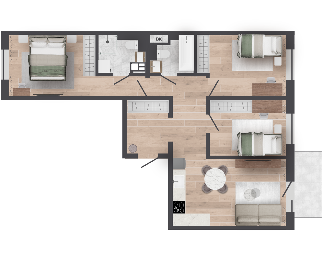 Квартиры на 1 этаже с личными участками-террасами с видом во двор