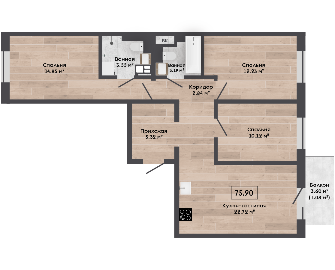 Обязательная покупка при приобретении квартиры| Площадь, м.кв. | 75.9 |