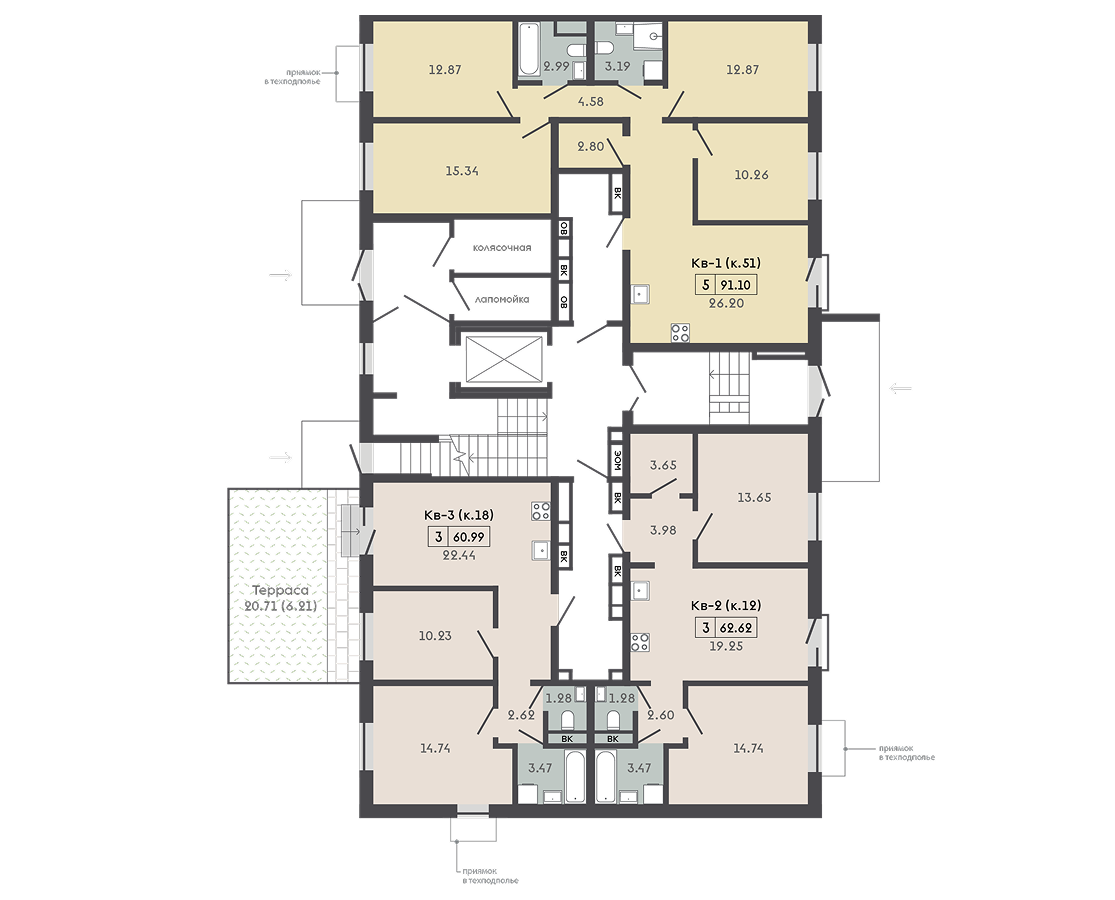 3-комнатная3-комнатная 60.99 м2 1 этаж
