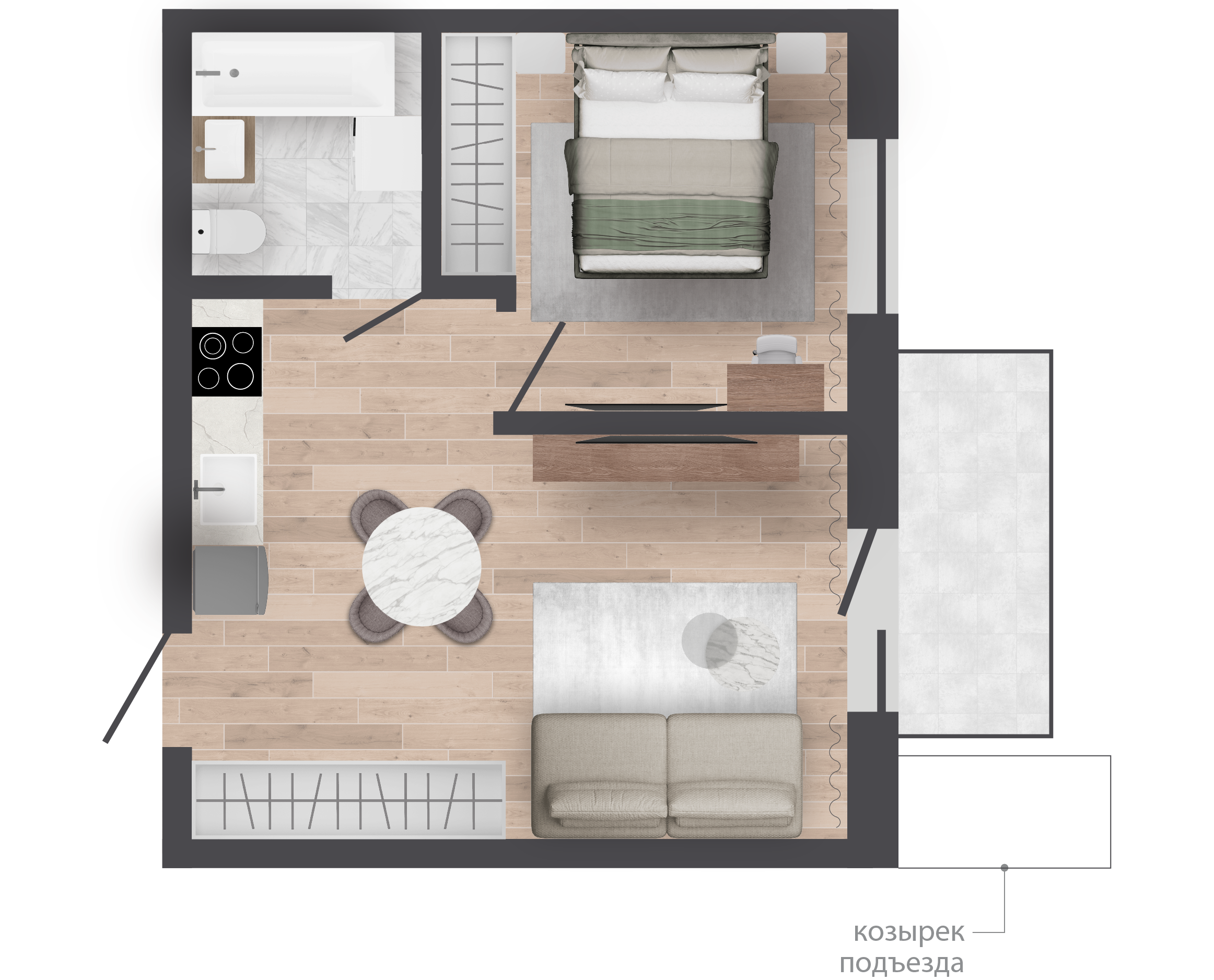 | 36,64 м² Площадь квартиры | 2,62 м Высота потолков | 500 мм Высота подоконной части |