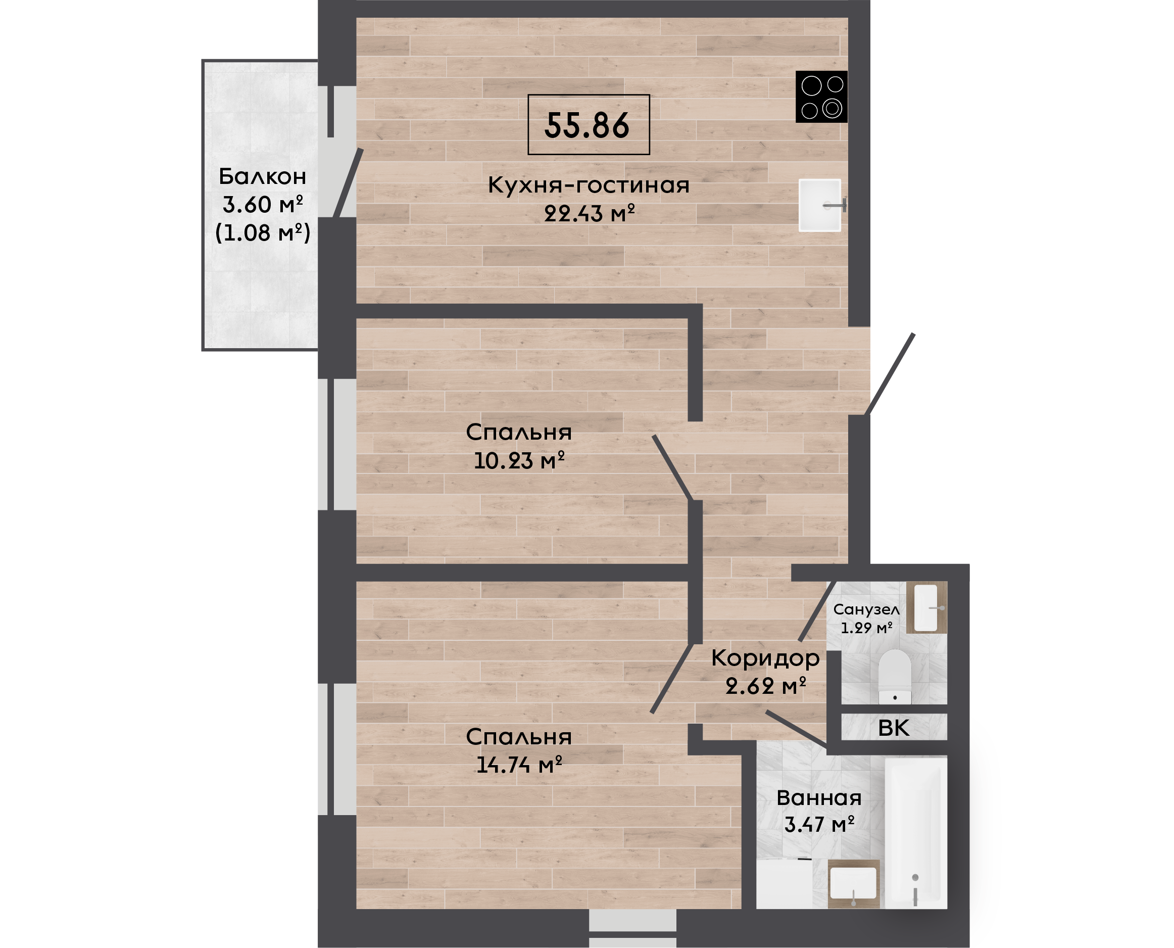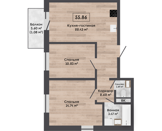 Обязательная покупка при приобретении квартиры| Площадь, м.кв. | 55.86 |