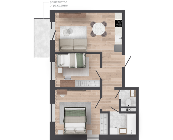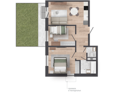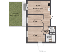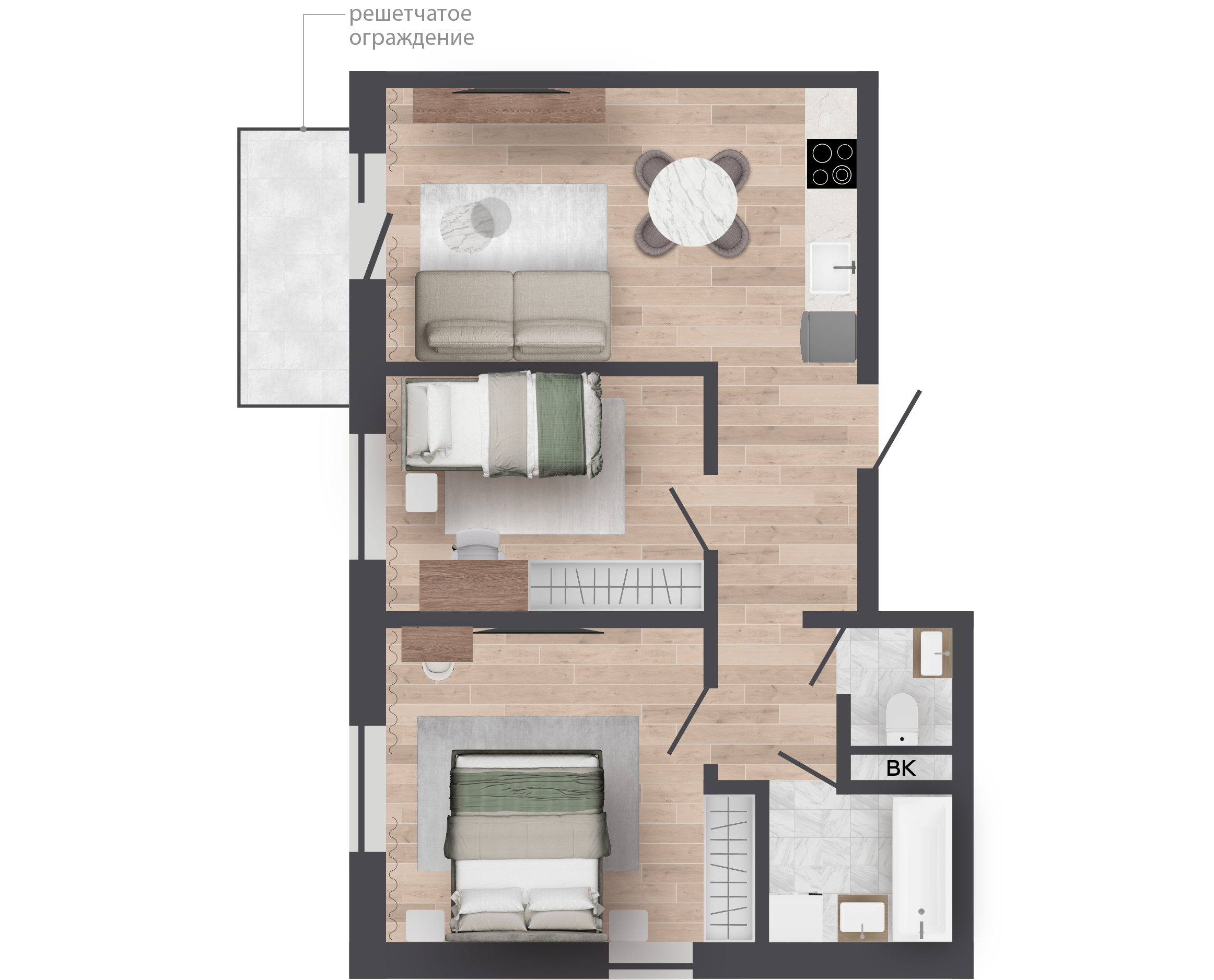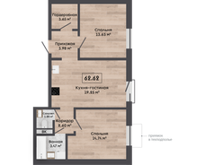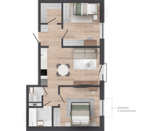 | 55,86 м² Площадь квартиры | 2,62 м Высота потолков | 500 мм Высота подоконной части |