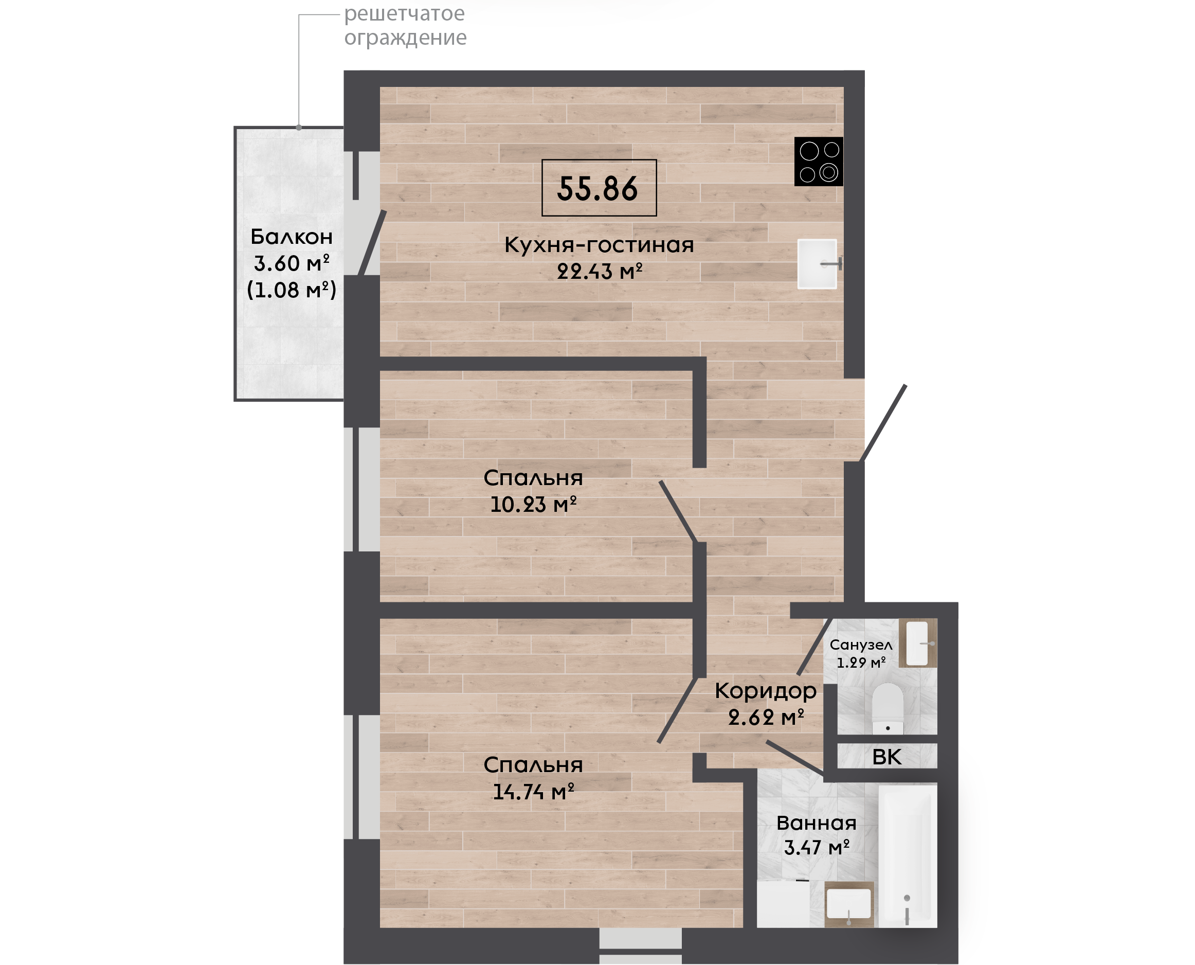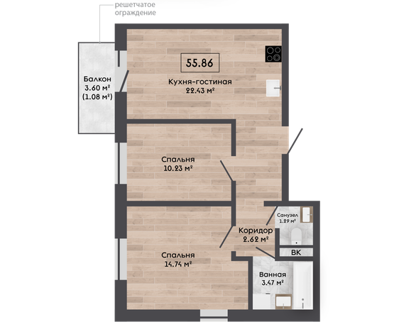 Обязательная покупка при приобретении квартиры| Площадь, м.кв. | 55.86 |