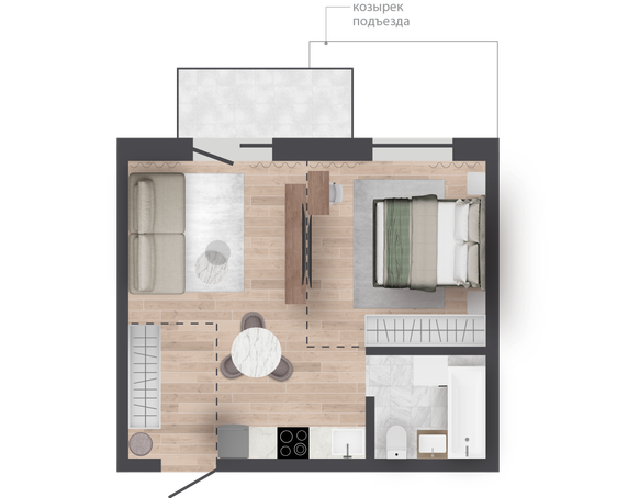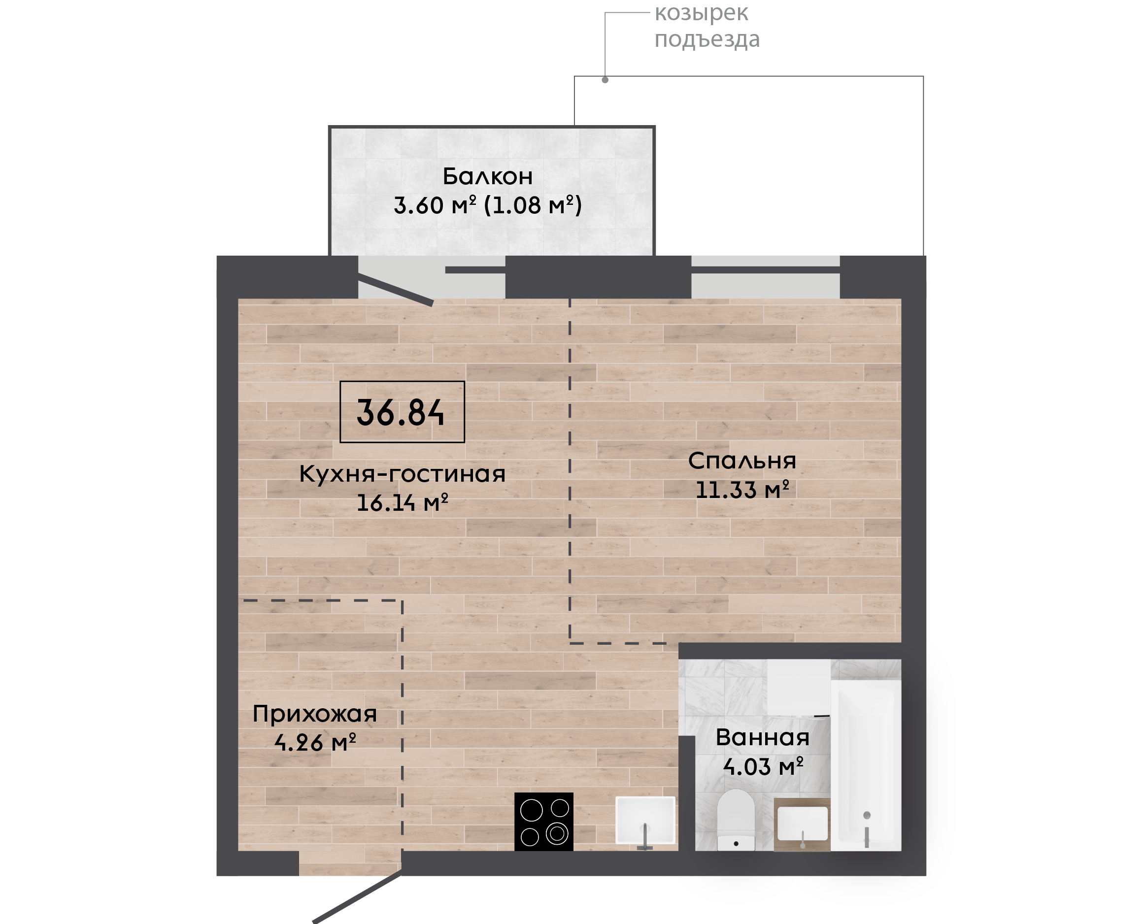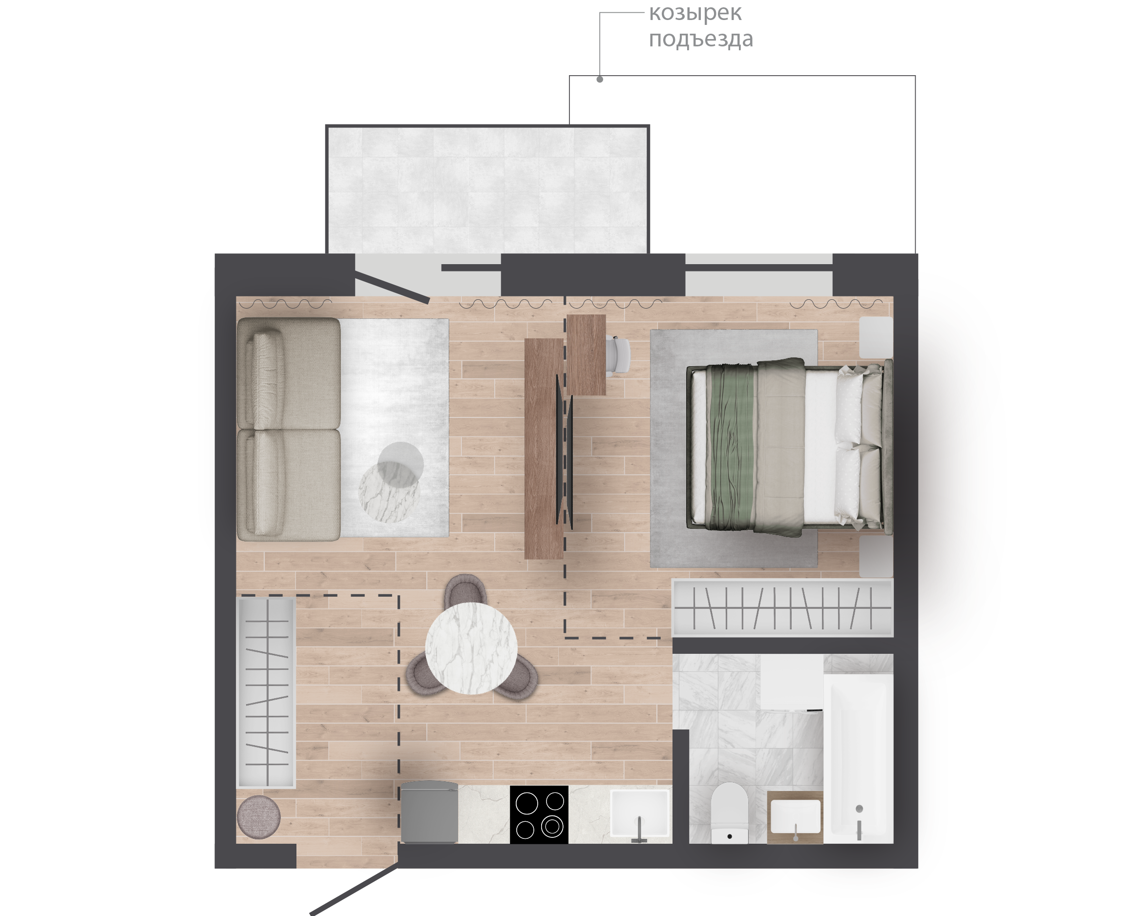 | 36,84 м² Площадь квартиры | 2,7 м Высота потолков | 500 мм Высота подоконной части |