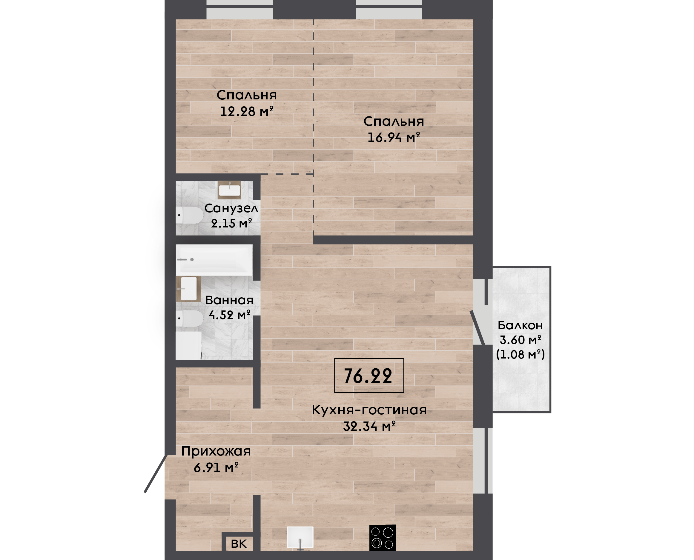 Обязательная покупка при приобретении квартиры| Площадь, м.кв. | 76.22 |