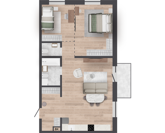 | 76,22 м² Площадь квартиры | 2,7 м Высота потолков | 500 мм Высота подоконной части |