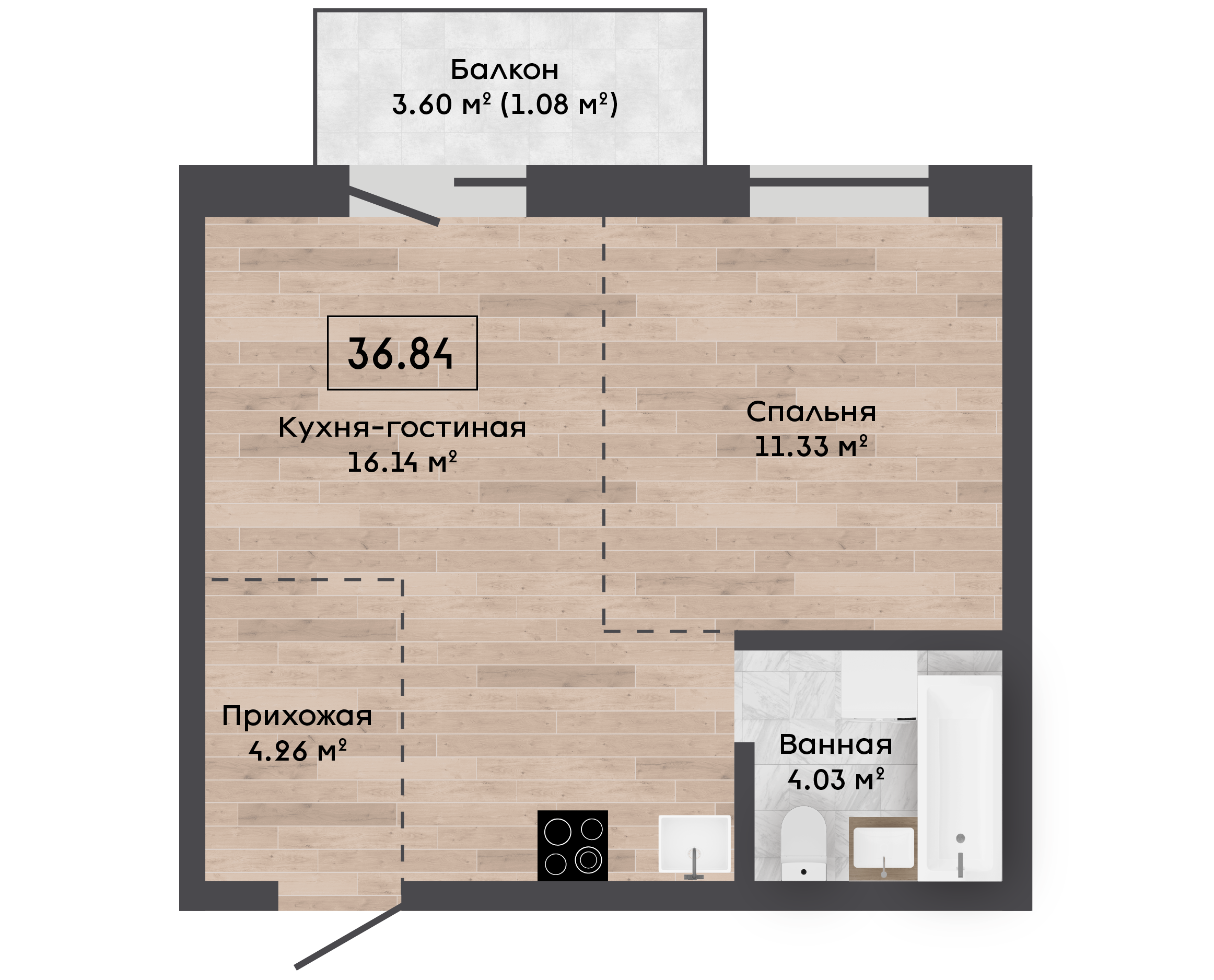 | Площадь, м.кв. | 36.84 |