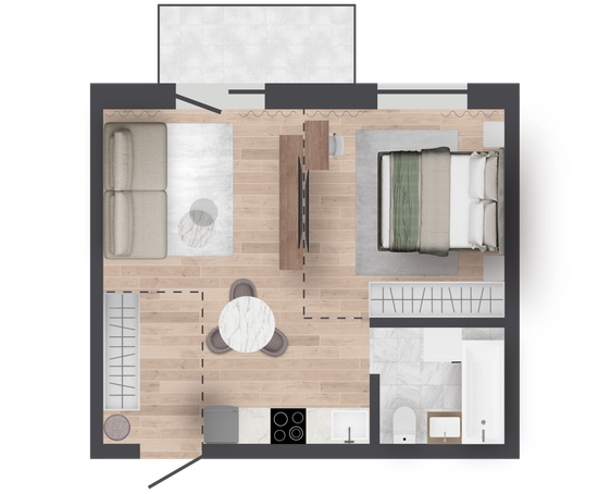 | 36,84 м² Площадь квартиры | 2,7 м Высота потолков | 500 мм Высота подоконной части |