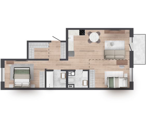 | 67,77 м² Площадь квартиры | 2,7 м Высота потолков | 500 мм Высота подоконной части |