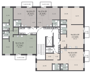 | 77,66 м² Площадь квартиры | 2,7 м Высота потолков | 500 мм Высота подоконной части |