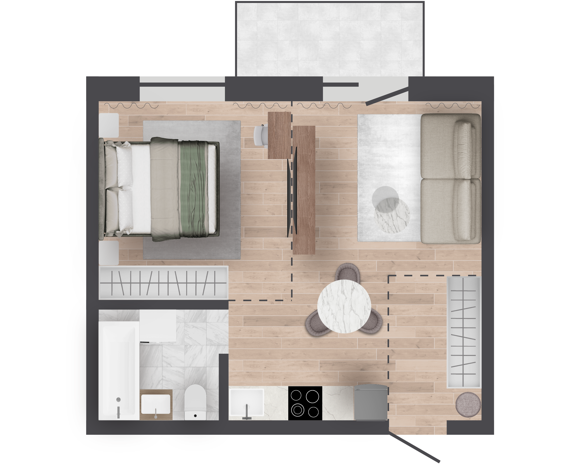 | 36,73 м² Площадь квартиры | 2,7 м Высота потолков | 500 мм Высота подоконной части |