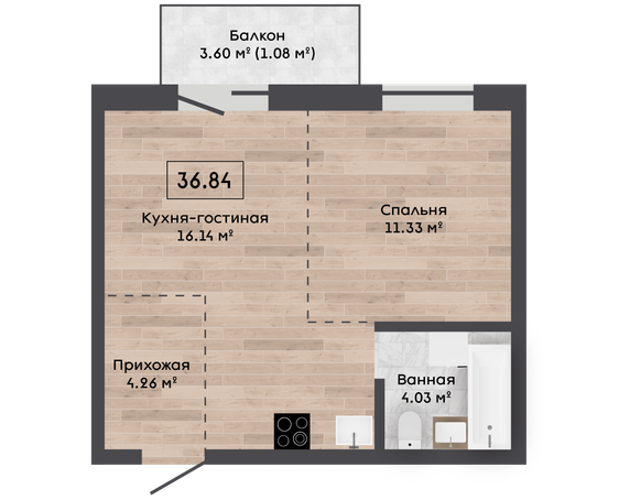 | 36,84 м² Площадь квартиры | 2,7 м Высота потолков | 500 мм Высота подоконной части |