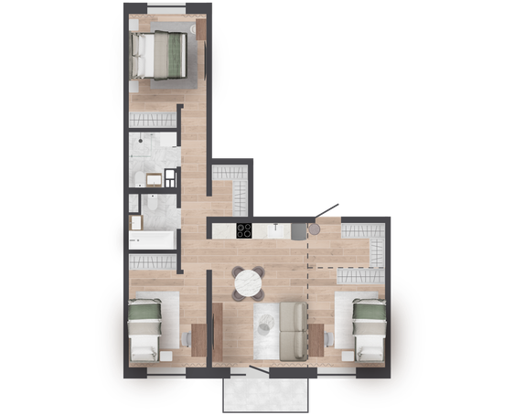 | 77,66 м² Площадь квартиры | 2,7 м Высота потолков | 500 мм Высота подоконной части |