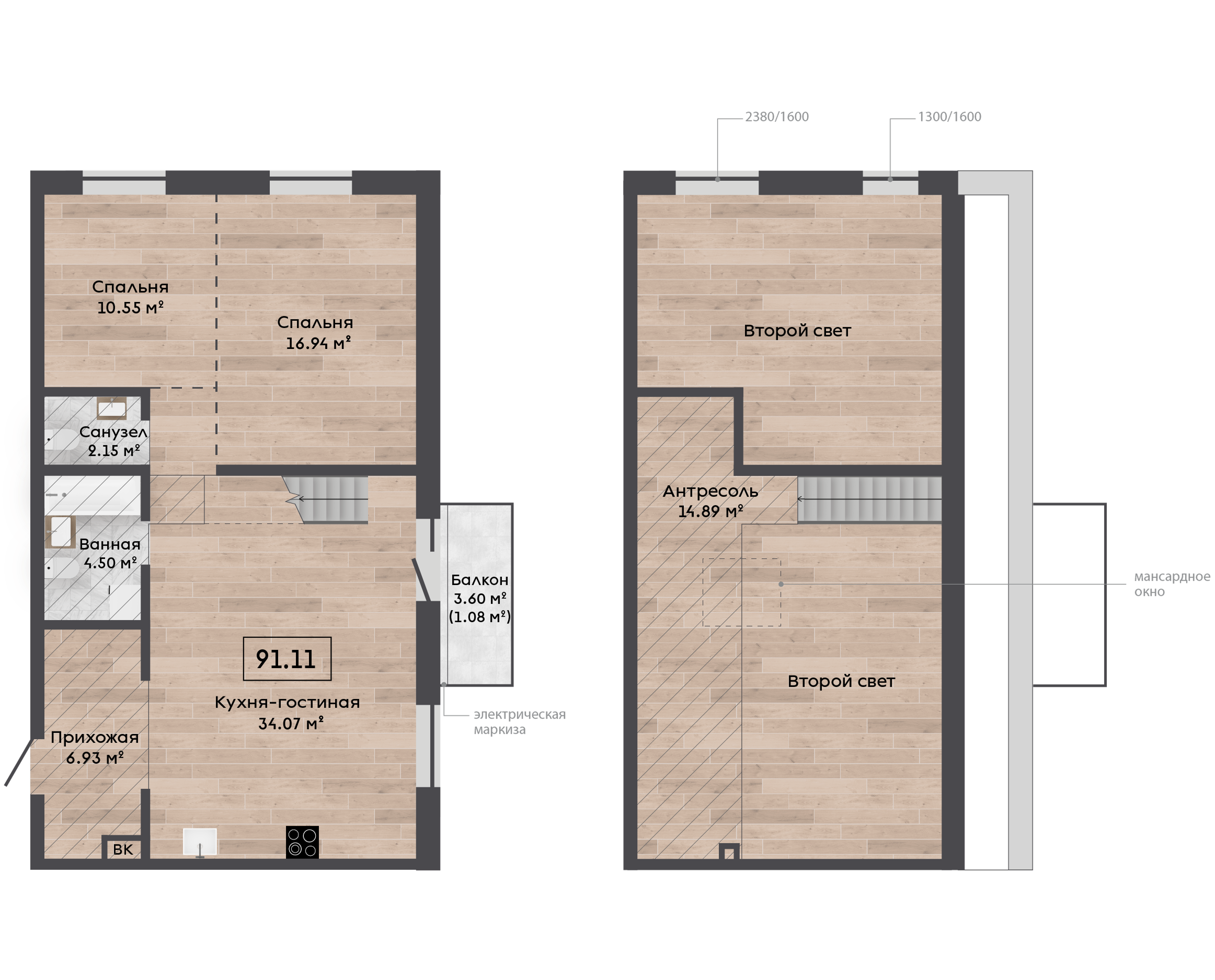 | 91,11 м² Площадь квартиры | до 7,19 м Высота потолков | 500 мм Высота подоконной части |