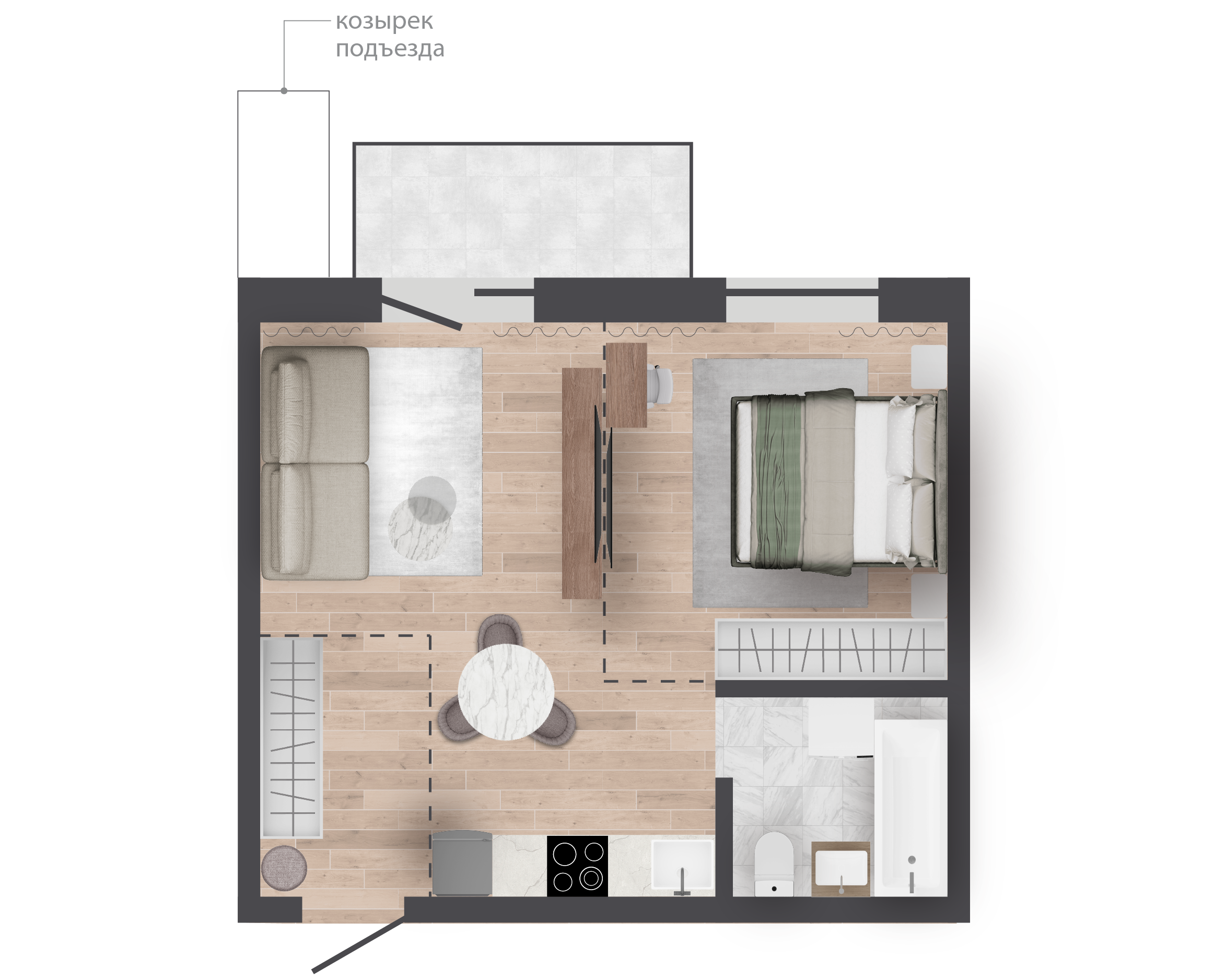 | 36,73 м² Площадь квартиры | 2,7 м Высота потолков | 500 мм Высота подоконной части |