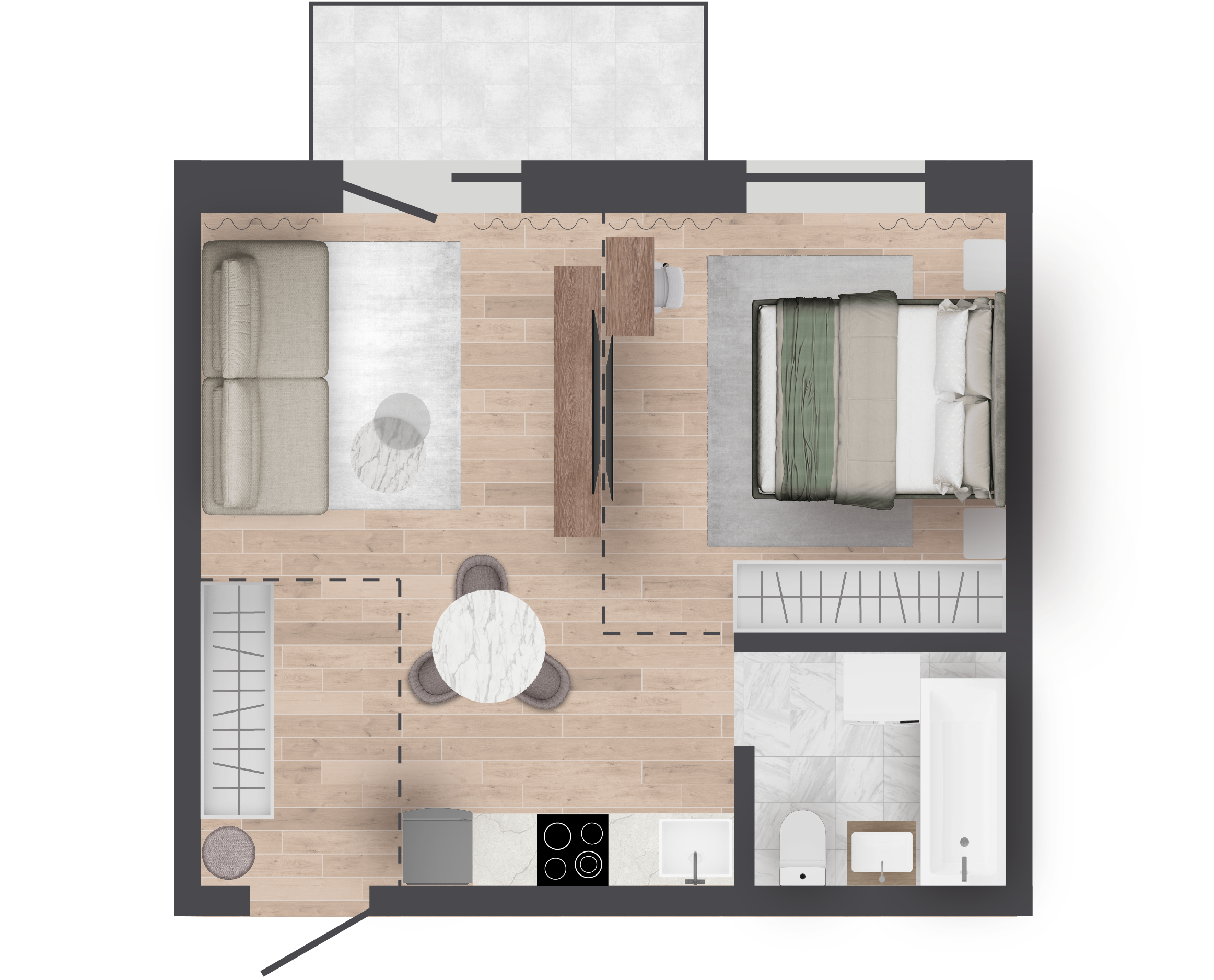 | 36,73 м² Площадь квартиры | 2,7 м Высота потолков | 500 мм Высота подоконной части |