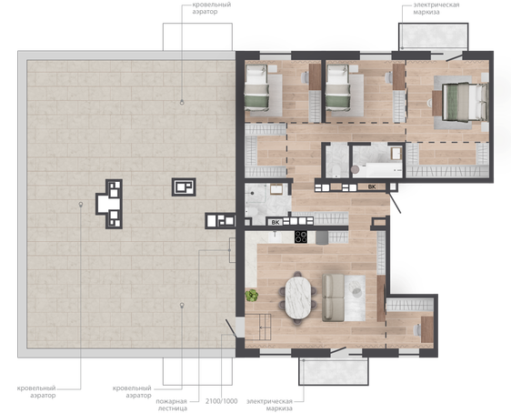 На террасе вы сможете отдыхать, проводить время с семьей, принимать гостей, заниматься творчеством и хобби — словом, жить максимально насыщенной жизнью без необходимости покидать собственный дом;