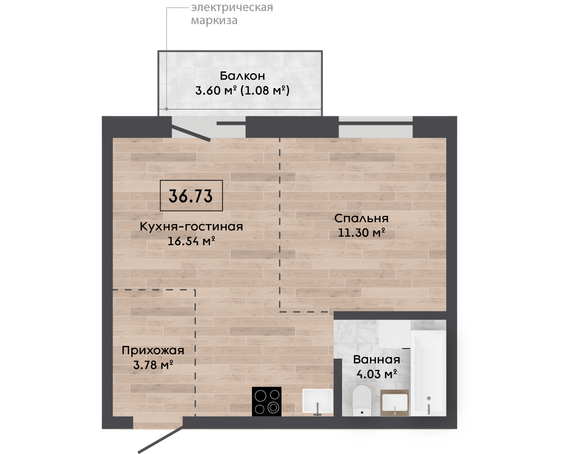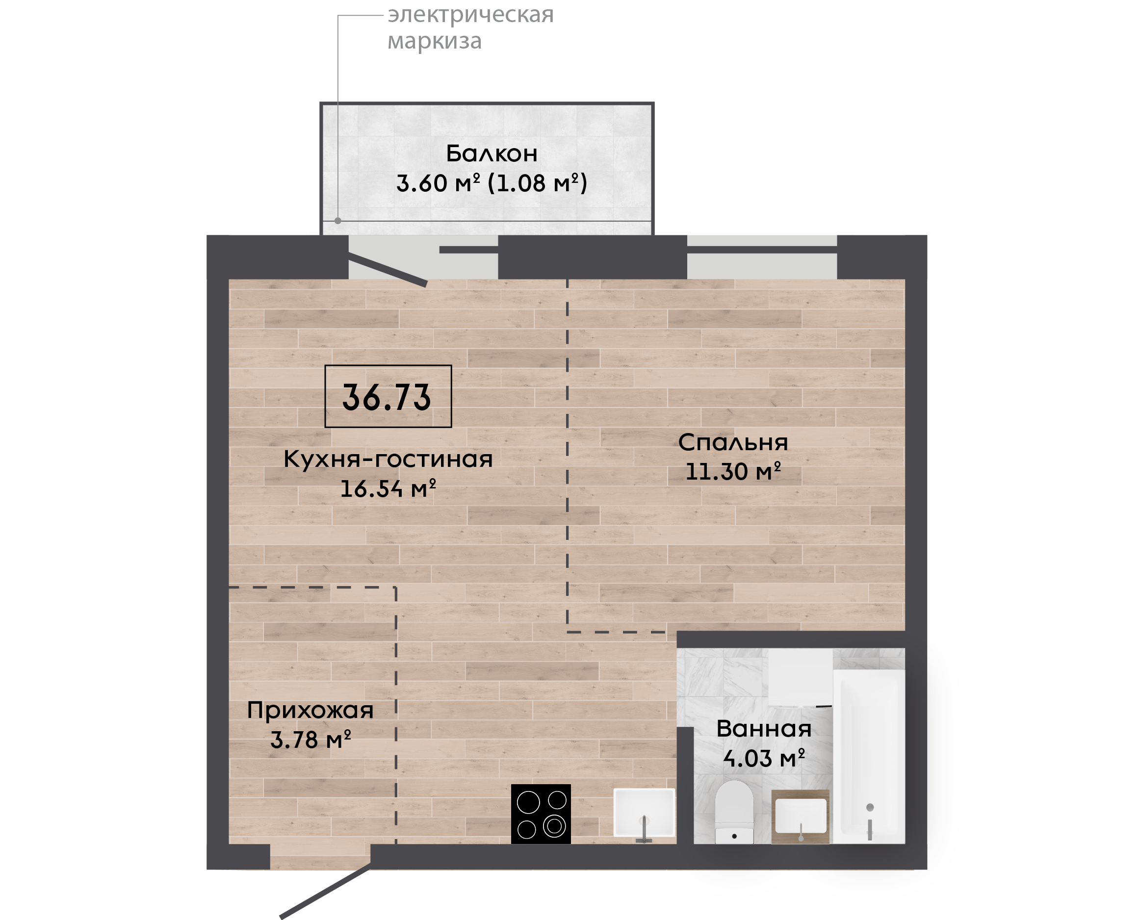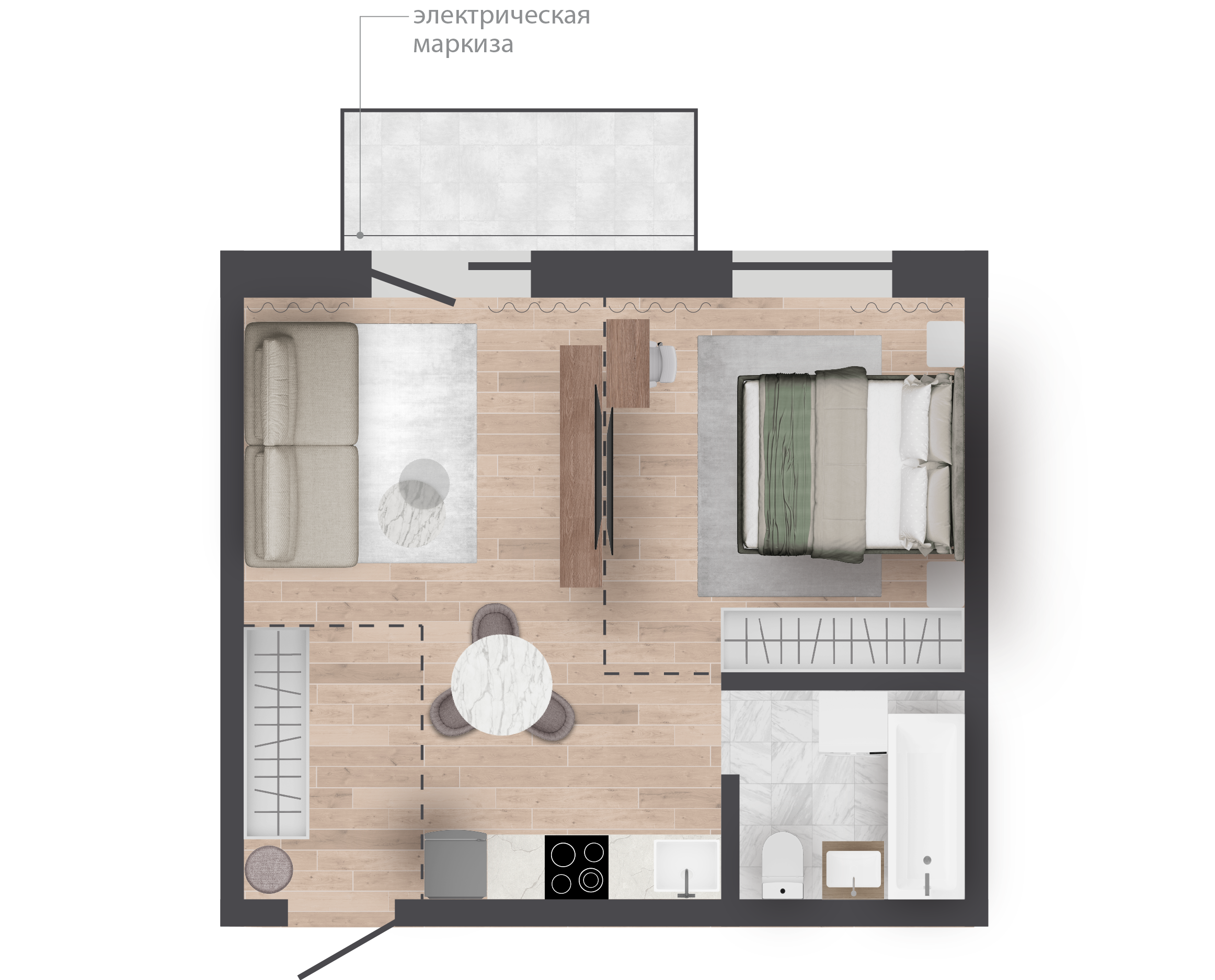 | 36,73 м² Площадь квартиры | 2,7 м Высота потолков | 500 мм Высота подоконной части |