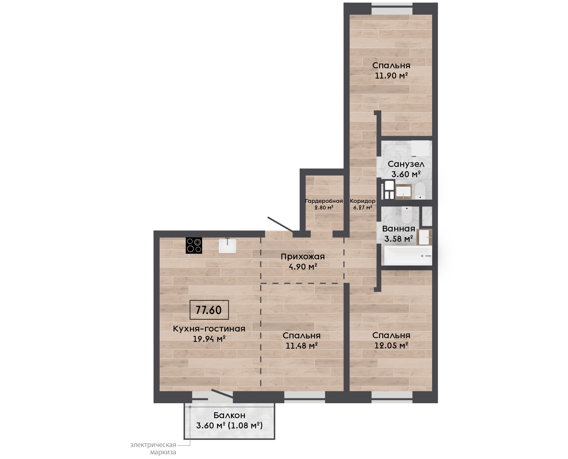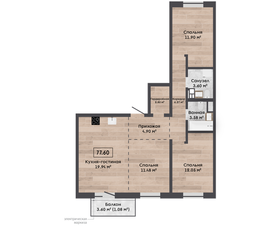 Обязательная покупка при приобретении квартиры| Площадь, м.кв. | 77.6 |