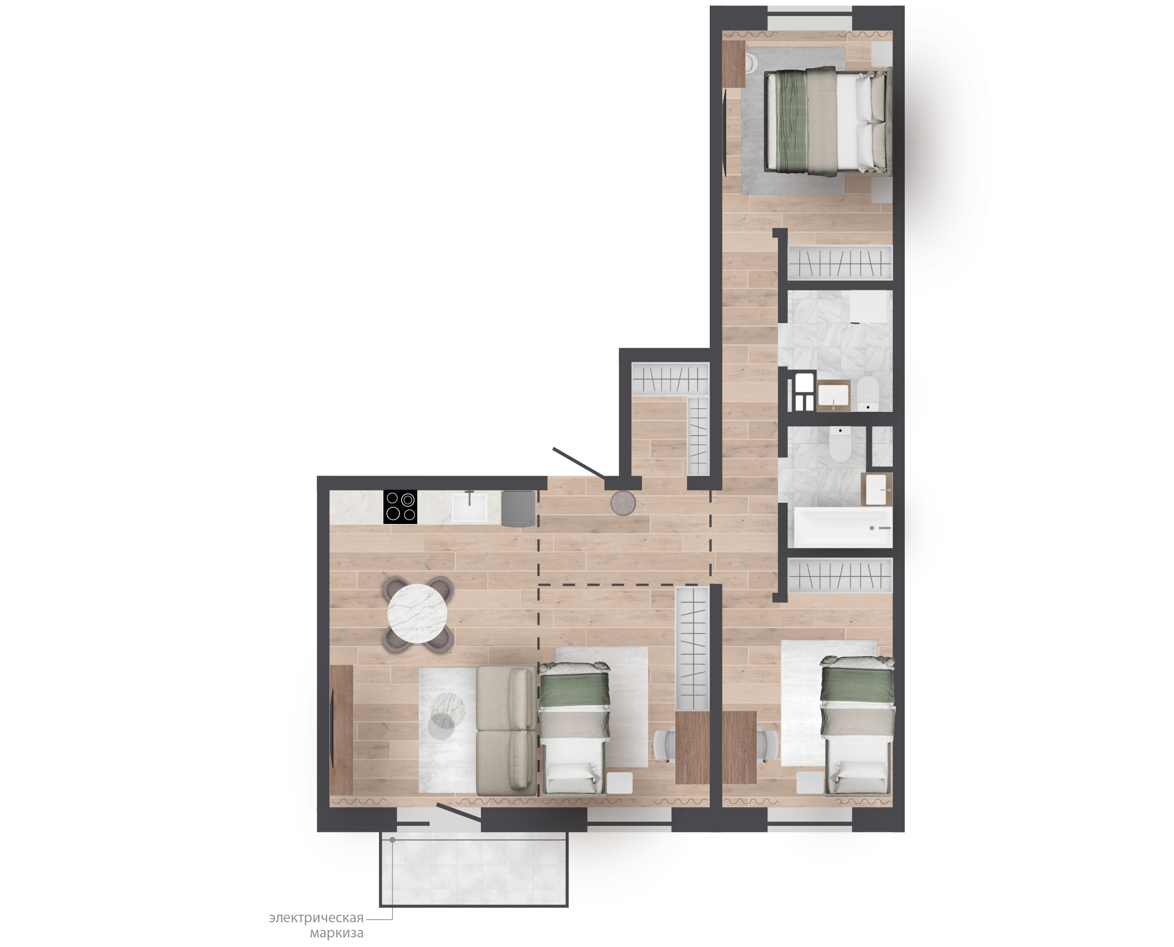 | 77,60 м² Площадь квартиры | 2,7 м Высота потолков | 500 мм Высота подоконной части |
