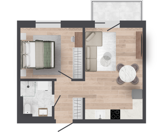 | 40,56 м² Площадь квартиры | 2,62 м Высота потолков | 500 мм Высота подоконной части |