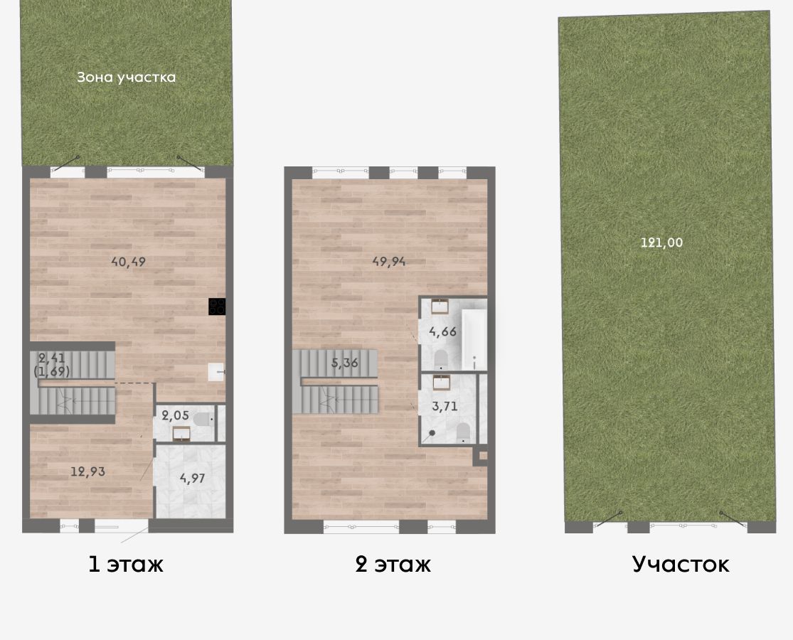 Благоустроенный участок для каждой квартиры от 97 до 121 м²