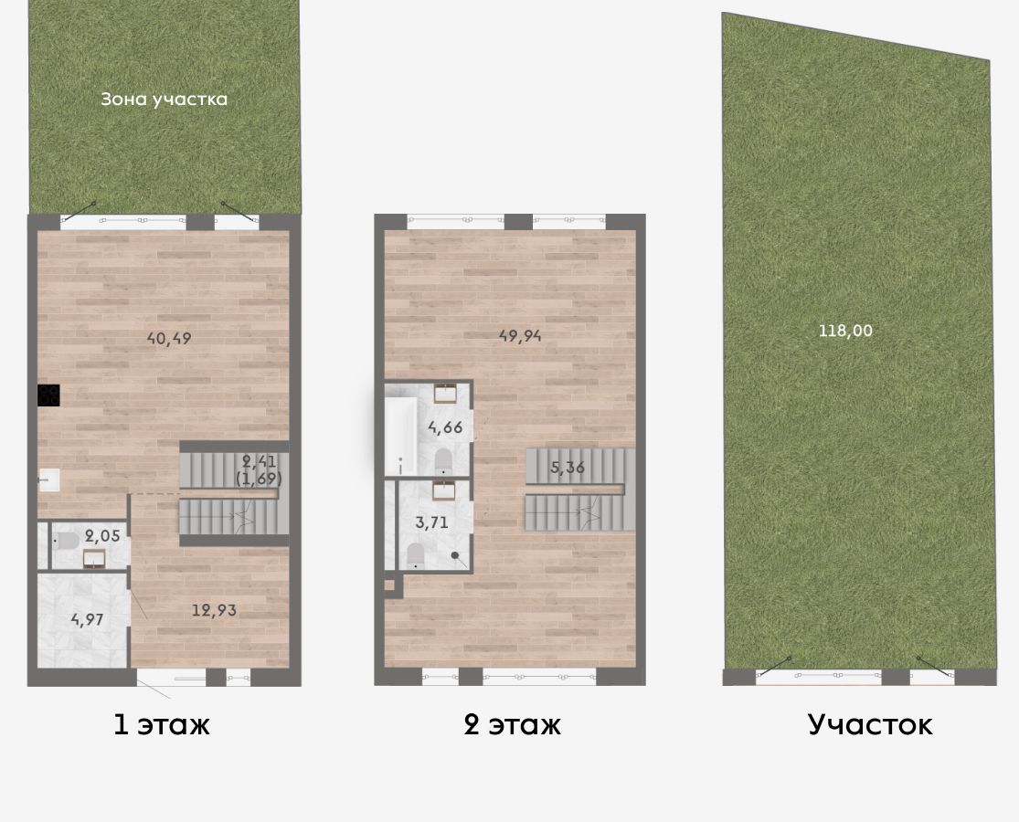 Благоустроенный участок для каждой квартиры от 97 до 121 м²