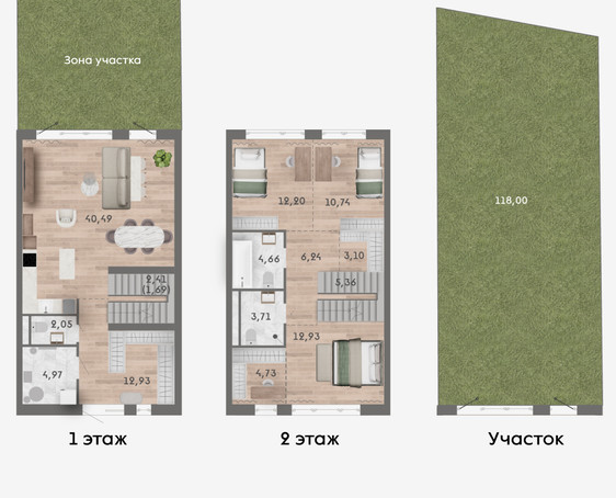 125,80 м² Площадь квартиры | 2,8 м Высота потолков | 118 м² Площадь участка |